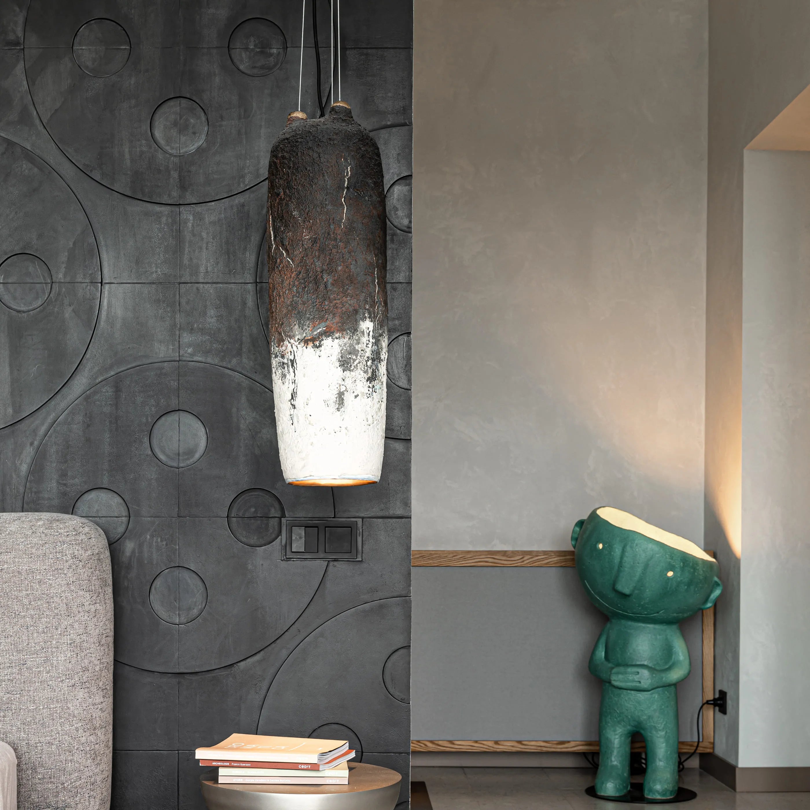 Les luminaires de la famille Crust sont tous fabriqués en céramique et sont peaufinés grâce à l'ancienne technique japonaise du raku. En raison de cette technique, chaque pièce est unique. Bien qu'il existe des couleurs de base pour ces luminaires, si elles ne correspondent pas à vos préférences, vous pouvez faire une demande de couleur personnalisé à Makhno.